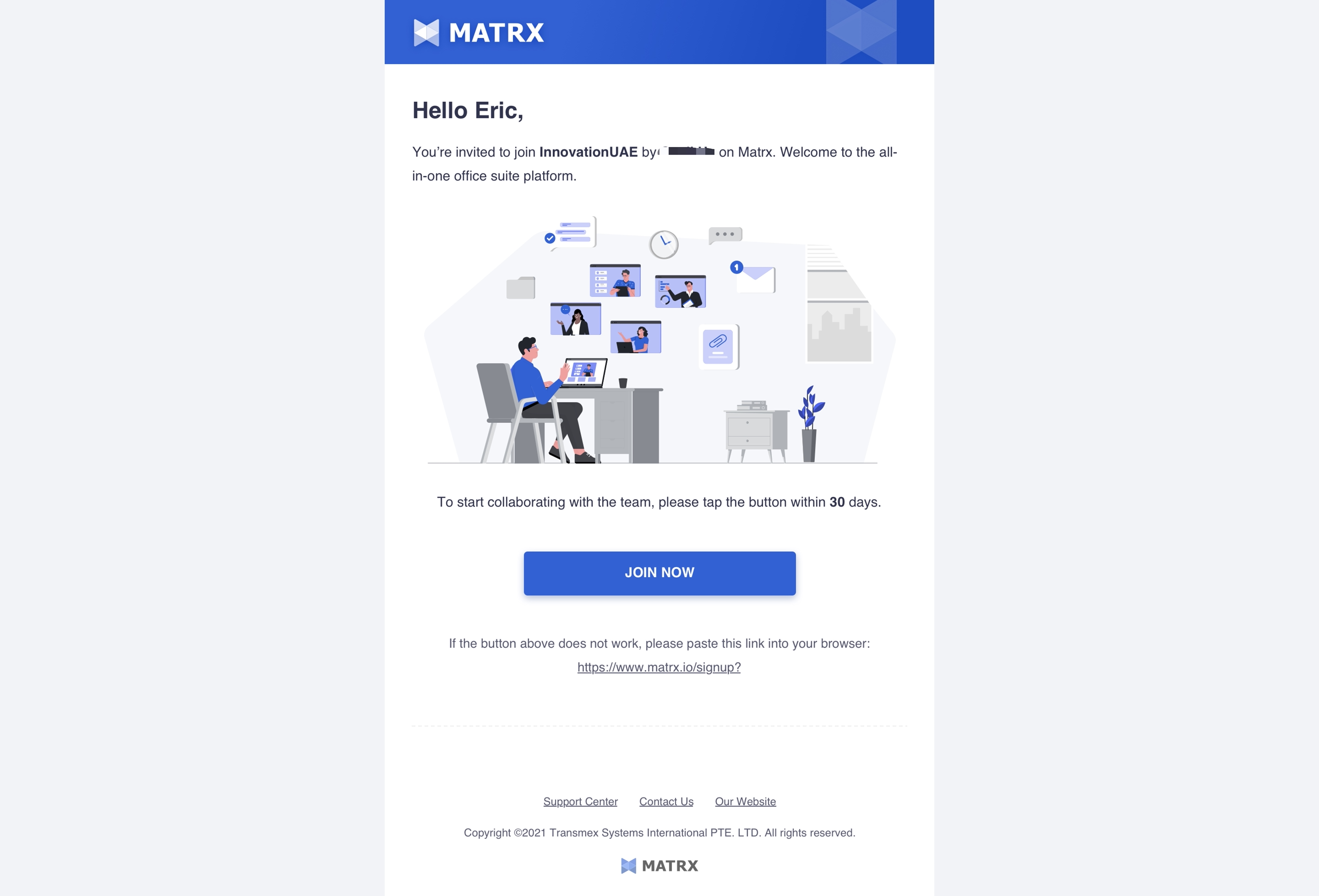 - Click JOIN NOW button in the email. Then you’ll be redirect to Matrx website in browser.