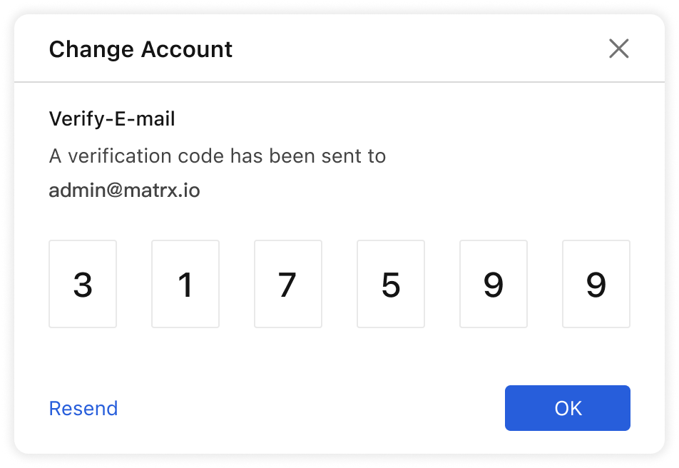 - Verify the email by verify the code Matrx sent you via email