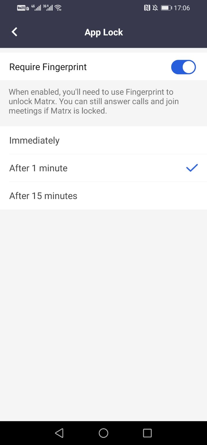 To make your Matrx more secure, you can enable App Lock to lock your Matrx when you are not on it and unlock it with your fingerprint or face ID.
