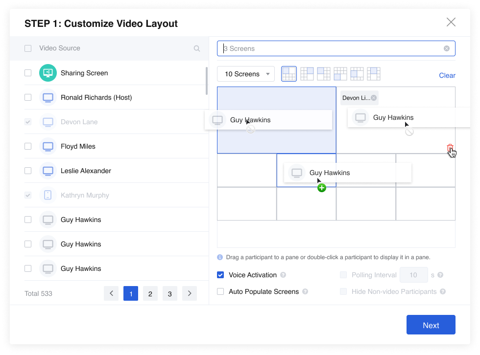- Select participants to apply the custom video layout