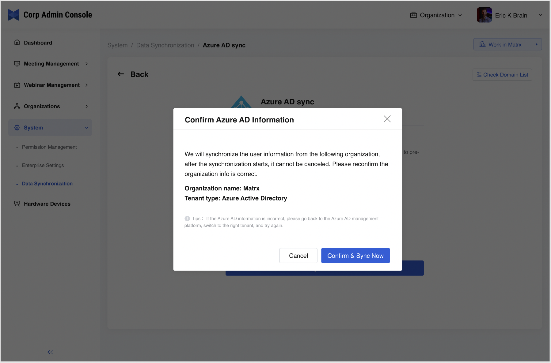 - Reconfirm Azure AD info and Click Confirm & Sync Now.