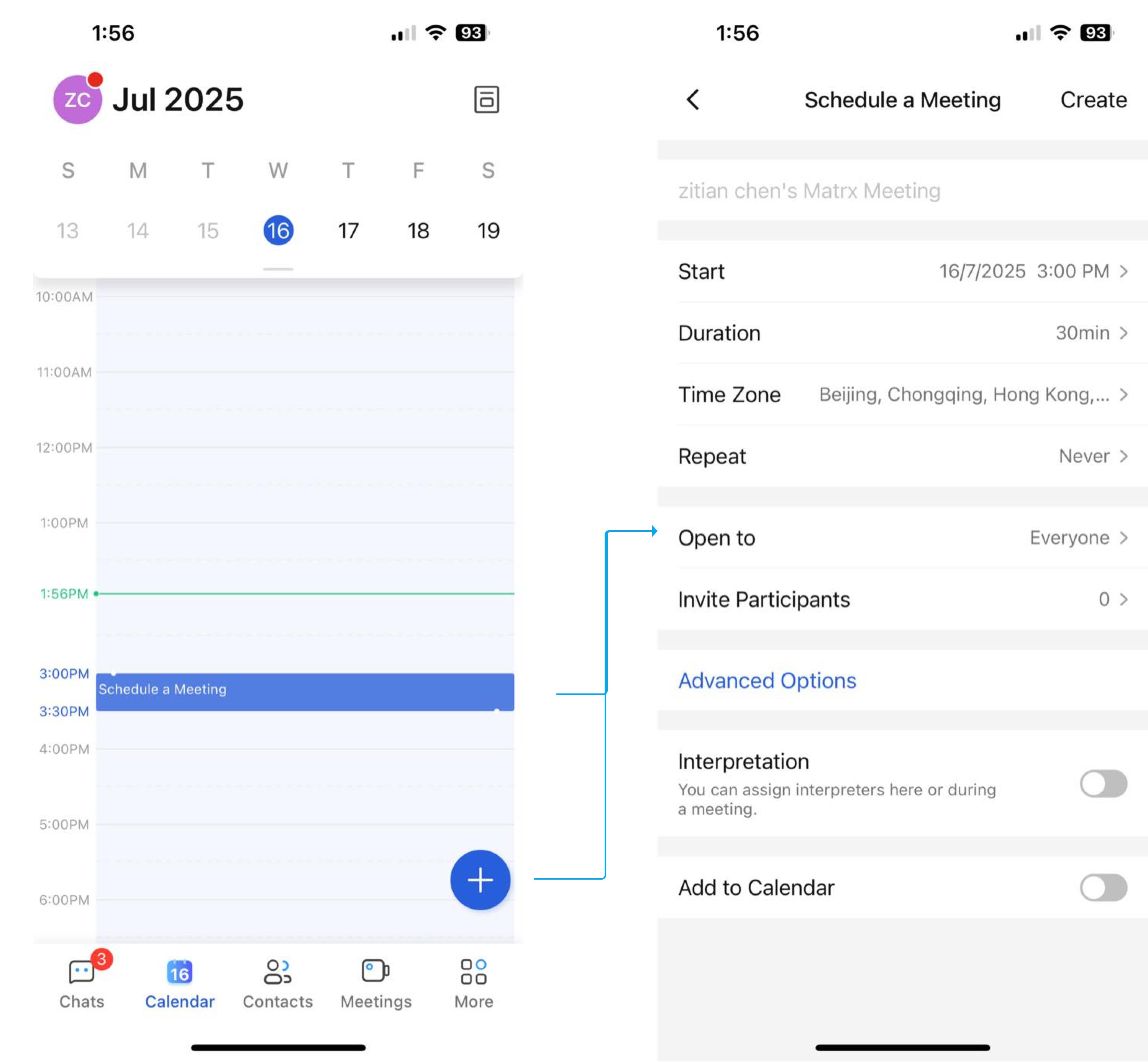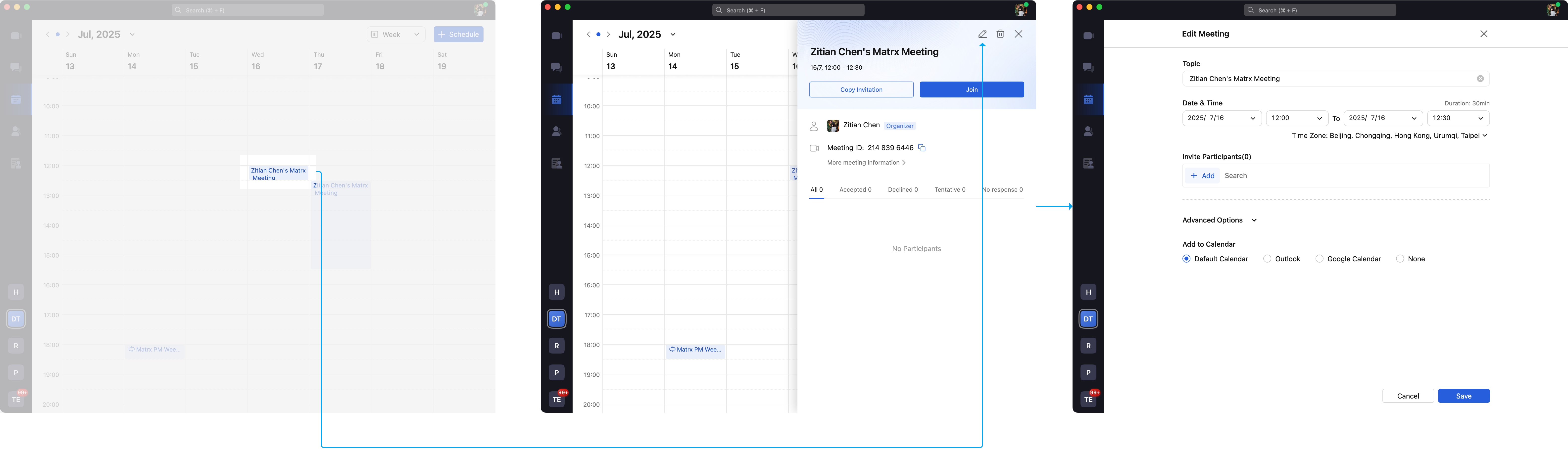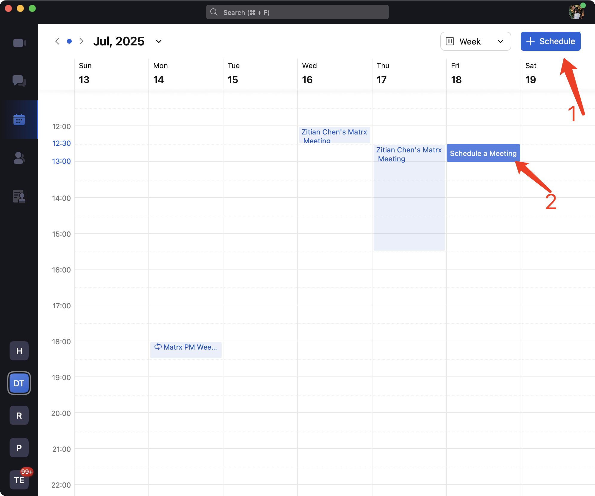 The current Matrx calendar is a collection of all meetings, and you can have a complete view of the meetings you've created through the calendar.