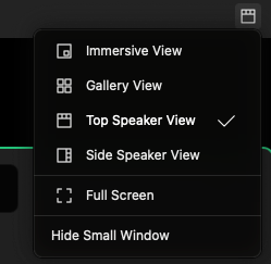 In the meeting, at the upper right corner, participants can click the Layout button to switch from Gallery view to Presenter view or to PiP view by their choice. Besides, they can click the Full-Screen button to switch to full-screen mode, or back to window mode.