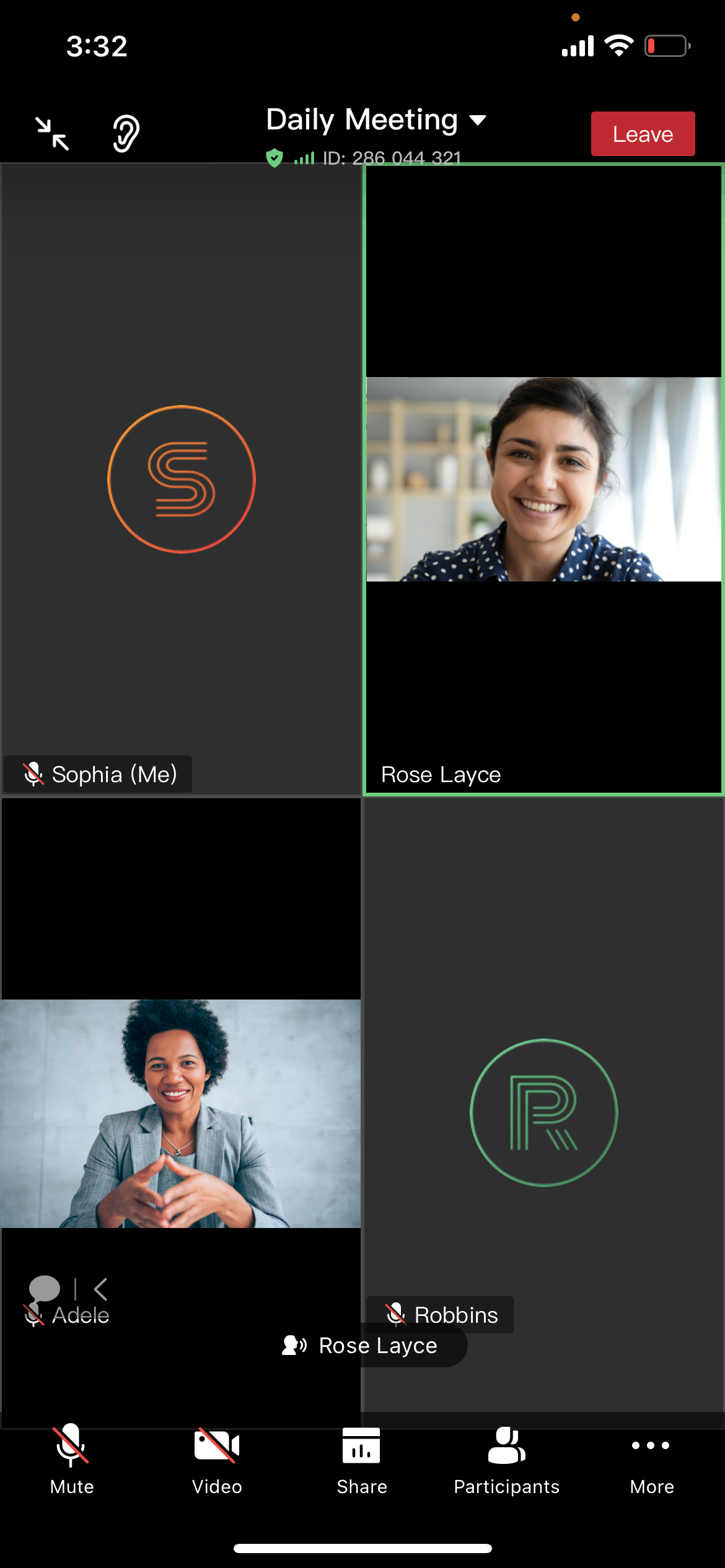 Participants can swipe left to see more participants in the gallery view.