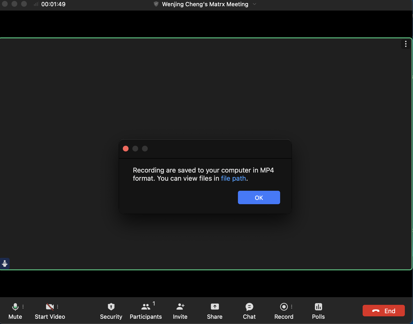 After you end the recording or the meeting ends, you will receive a pop-up prompt telling you where the recording file is saved. Click "file path" and you can find the saved file right away.