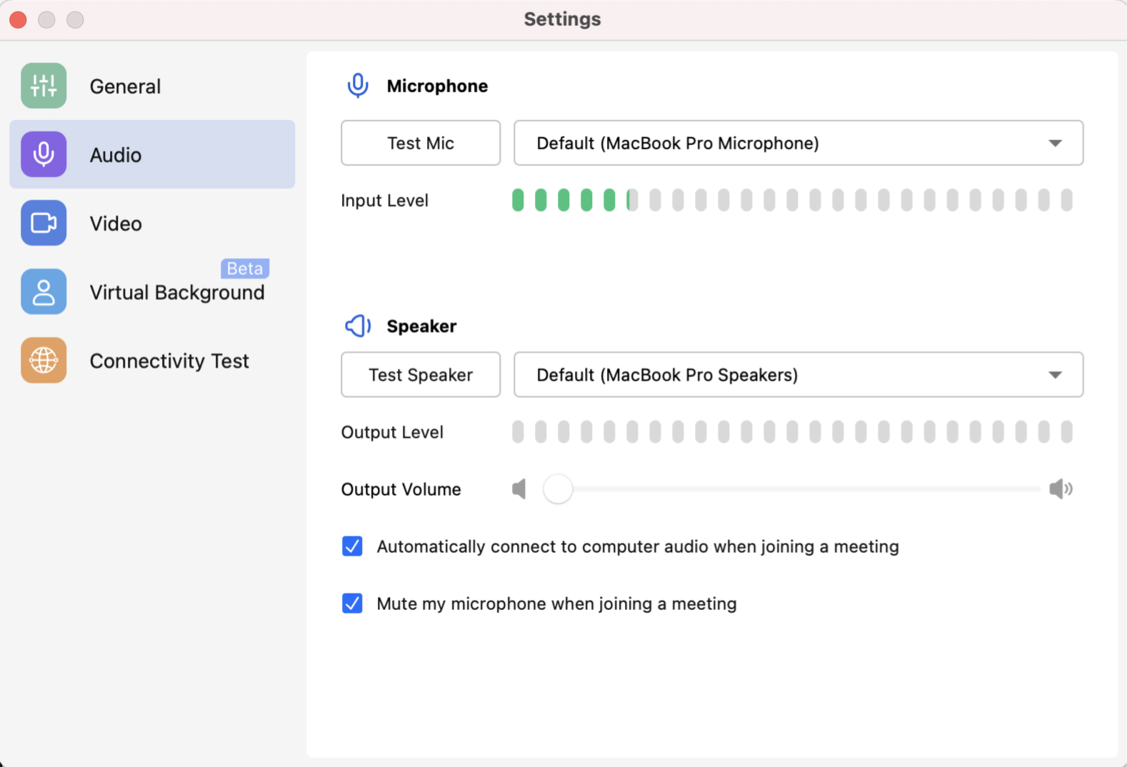 • On Mac/Windows, please go to Settings - Meeting Preference - Audio. Click Test Mic, and try to speak something, and see if you can hear the recorded audio.