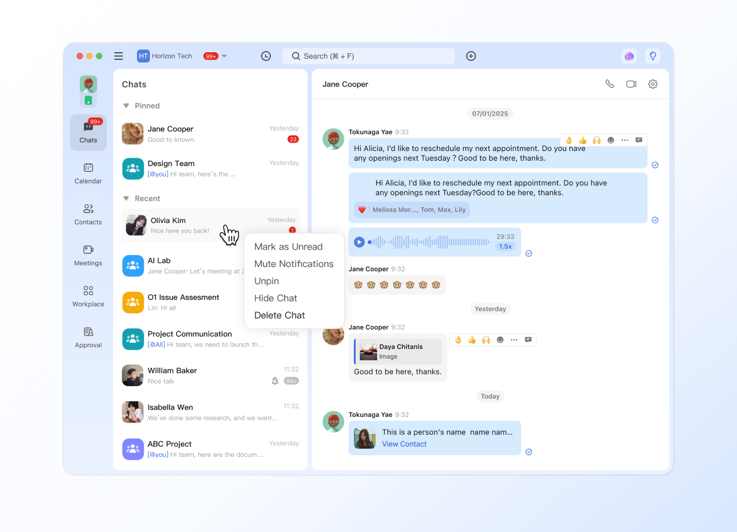 To meet the needs for efficient communication and interaction, Matrx allows users to mute or unmute chat notifications, pin or unpin the chat, mark as read or unread, and hide the chat.