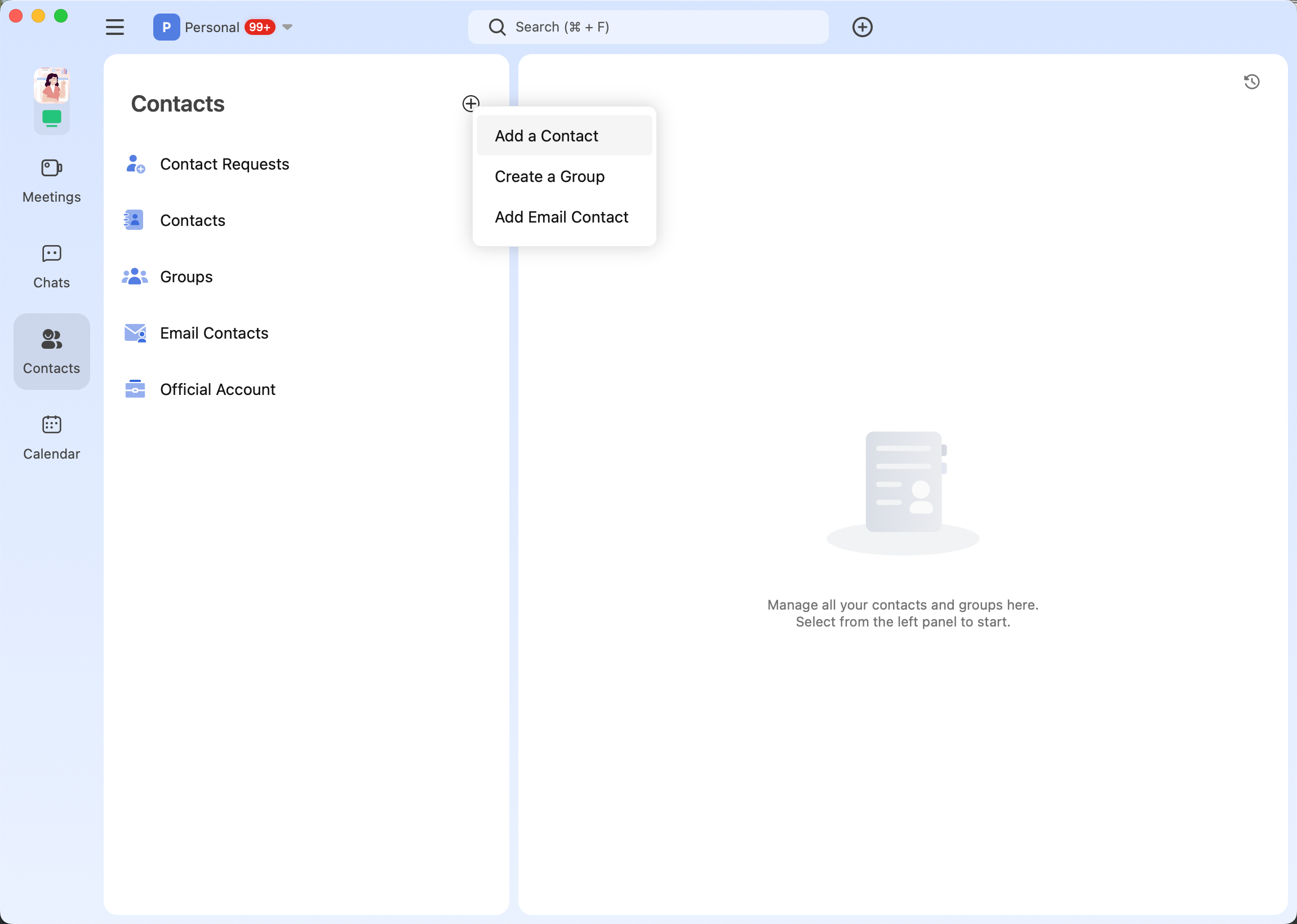 Add contacts in the Personal space