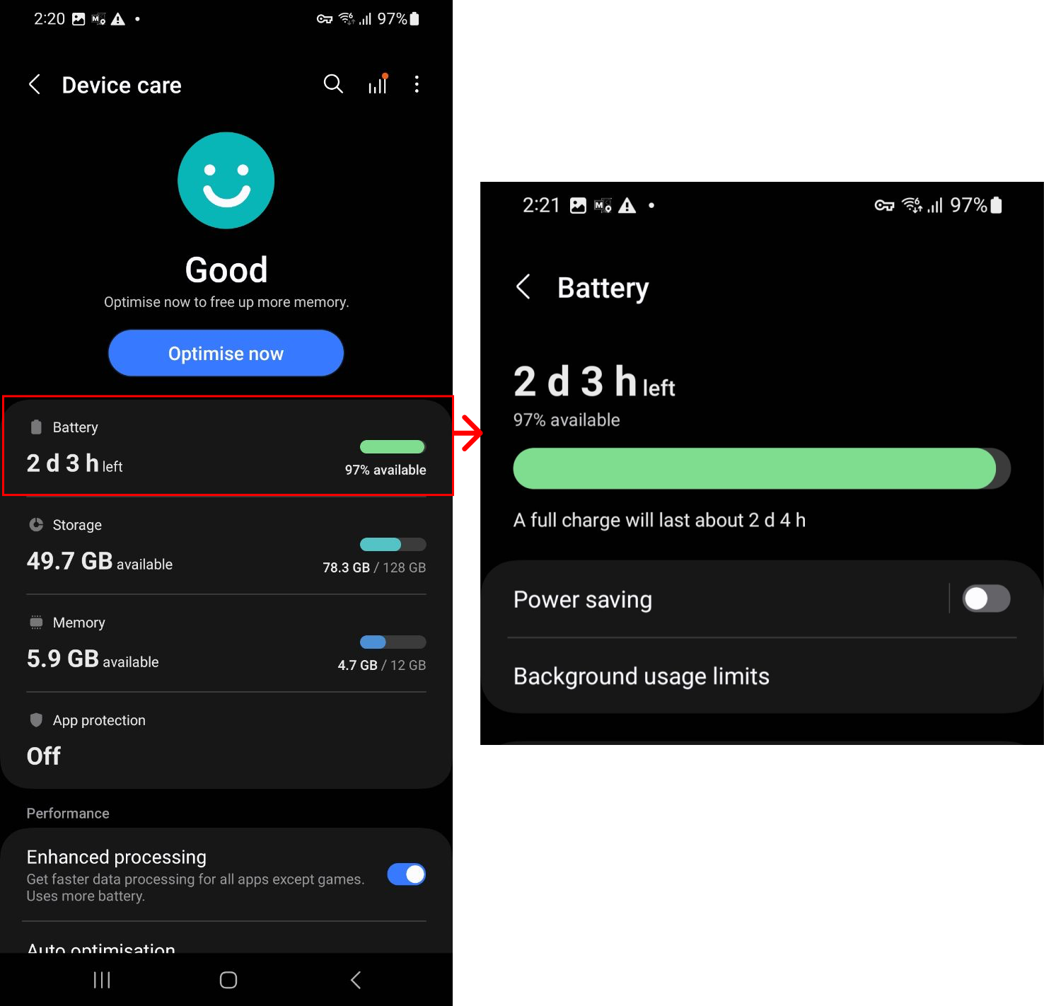 1. Go to "Settings" > “Battery and device care” / “Device maintenance"