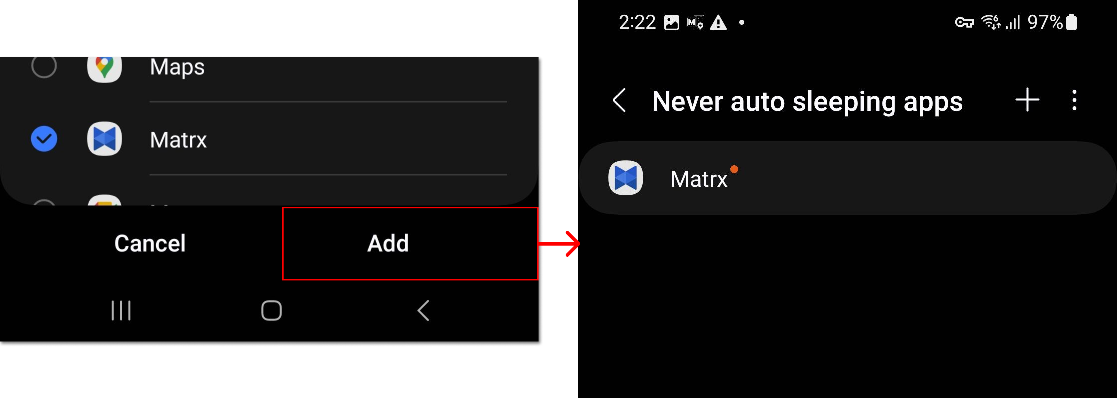 4. Tap "Add apps" > Search “Matrx”, click “Add” to save the settings.