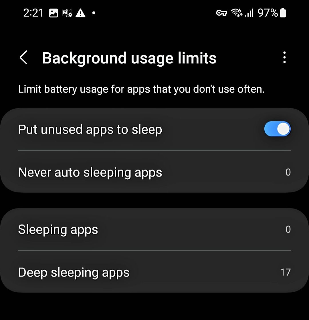 2. Then open "Battery" -> “Background usage limits” / “Unmonitored apps"
