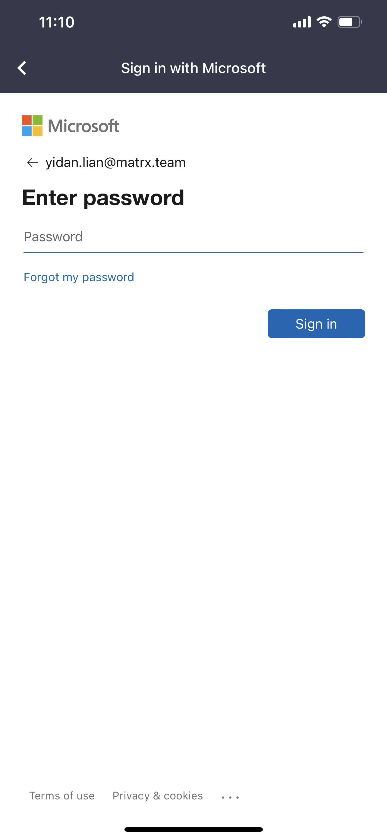 The authorization process is completed and the SSO is enabled. The enterprise employees can sign into Matrx with their Microsoft accounts now.
